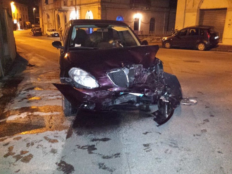 LUCCA - Incidente ieri notte al ponte di Monte San Quirico. Il conducente di una Y10 (foto Simi) proveniente da Camaiore ha perso il controllo dell'auto finendo contro una Fiat punto in sosta al margine della carreggiata.