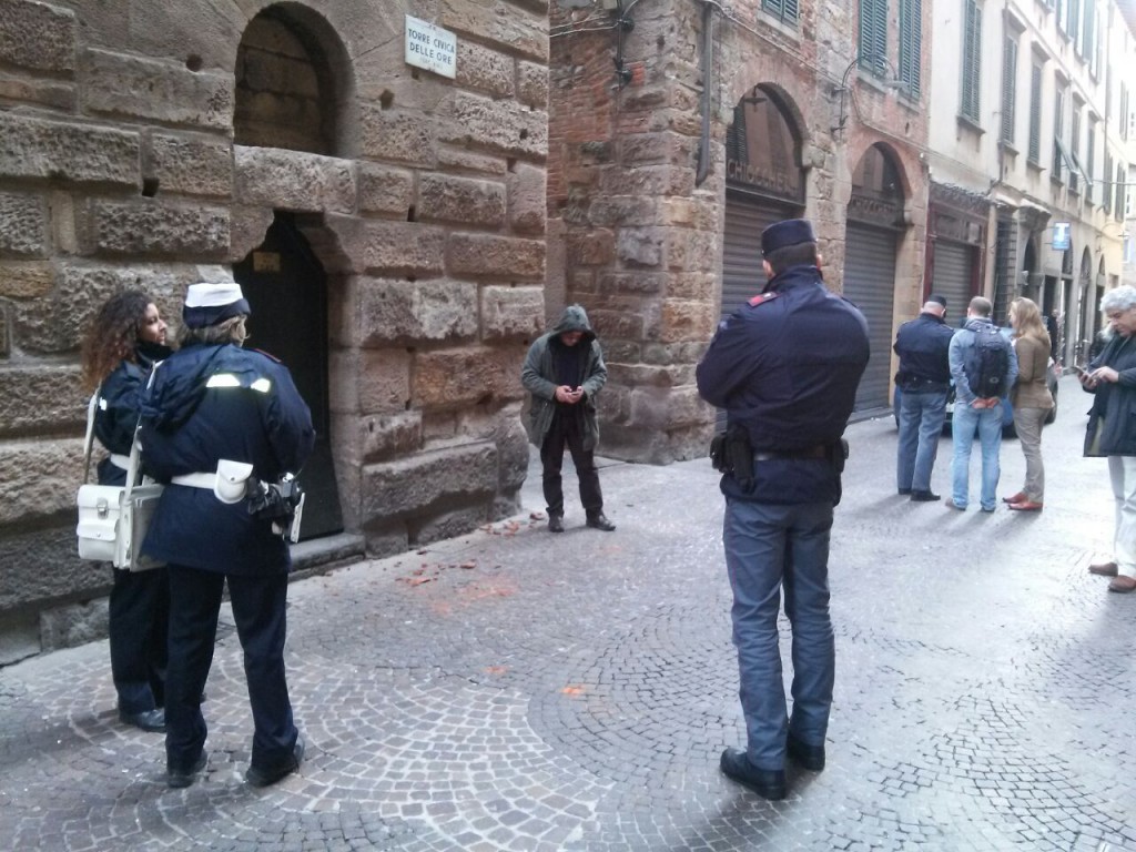 Secondo quanto raccontato alla polizia, il mattone avrebbe quasi sfiorato la coppia, in particolare una donna, cadendo sul lato di via Fillungo. Scattato l’allarme, sul posto sono subiti giunti gli agenti della polizia municipale e tecnici del Comune per bloccare l’accesso alla zona. Poco dopo sono intervenuti anche i vigili del fuoco di Lucca che hanno effettuato alcune verifiche.