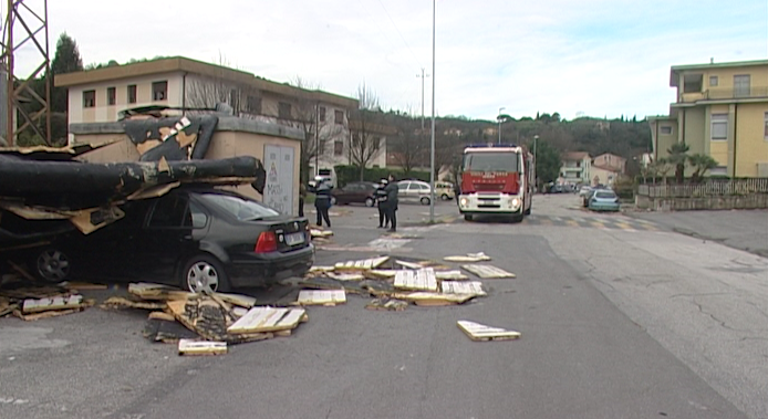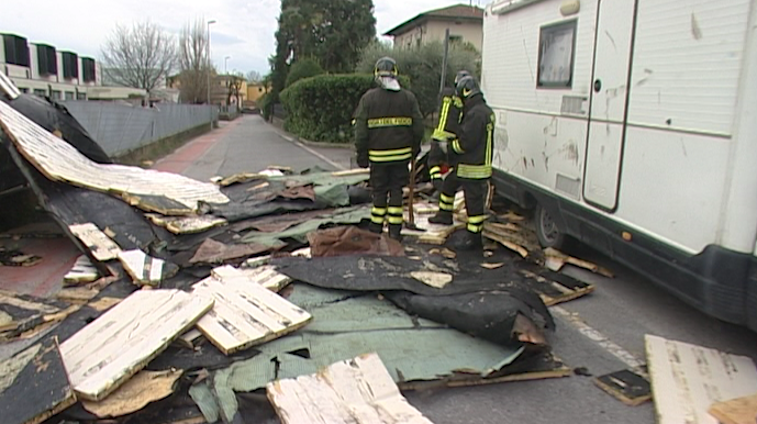 Altro episodio grave a Ponte a Moriano, dove il tetto della palestra della scuola primarie è volato in strada. Due persone, due donne, sono rimaste ferite. La scuola è rimasta chiusa.
