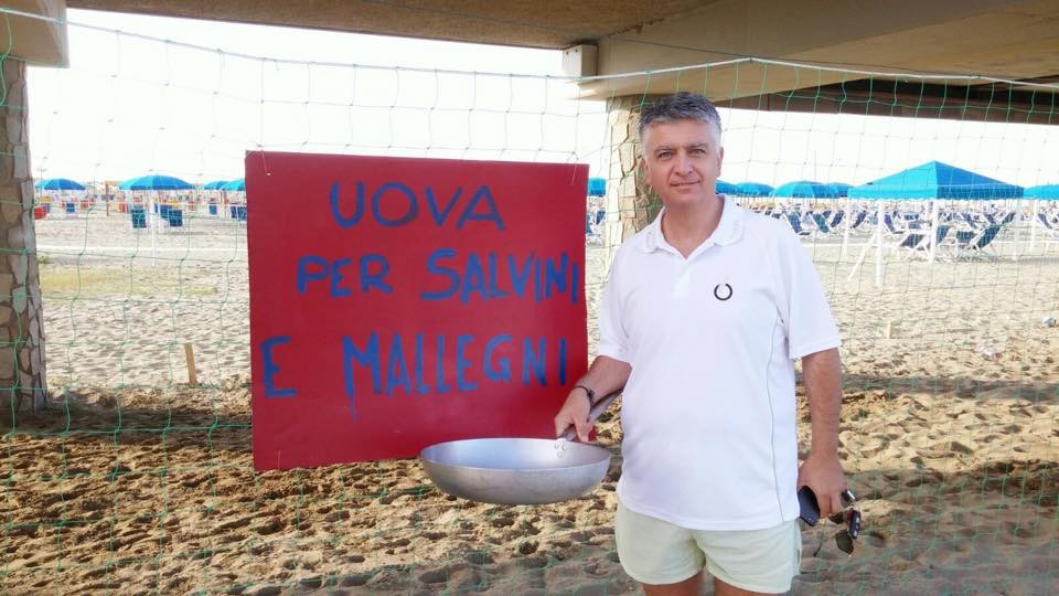 In mattinata sul posto era arrivato anche il sindaco Mallegni che accettando lo scherzo aveva posato con una padella in mano sotto la scritta “Uova per Salvini e Mallegni”.
