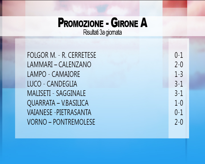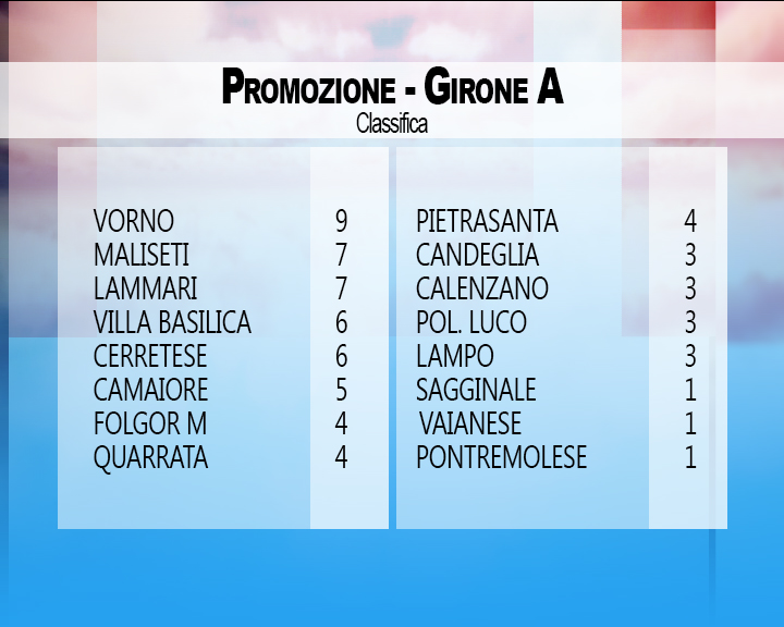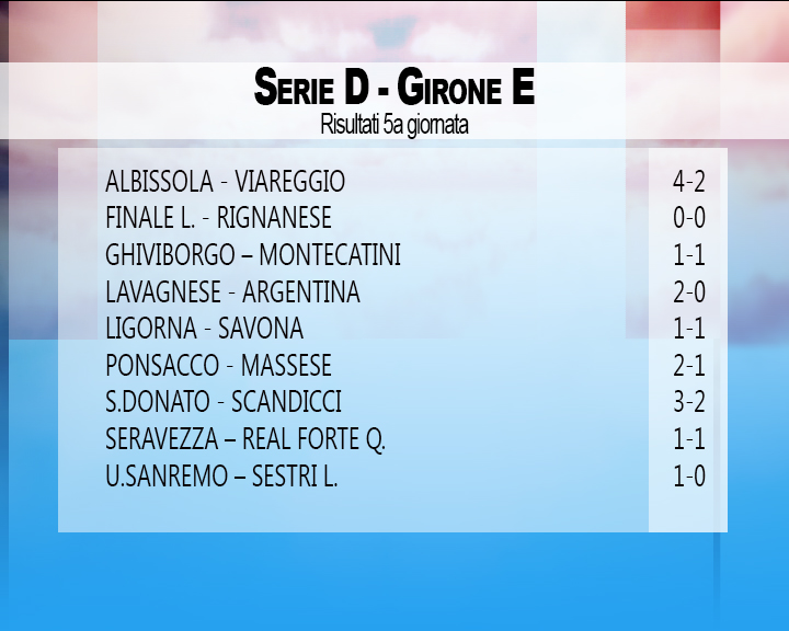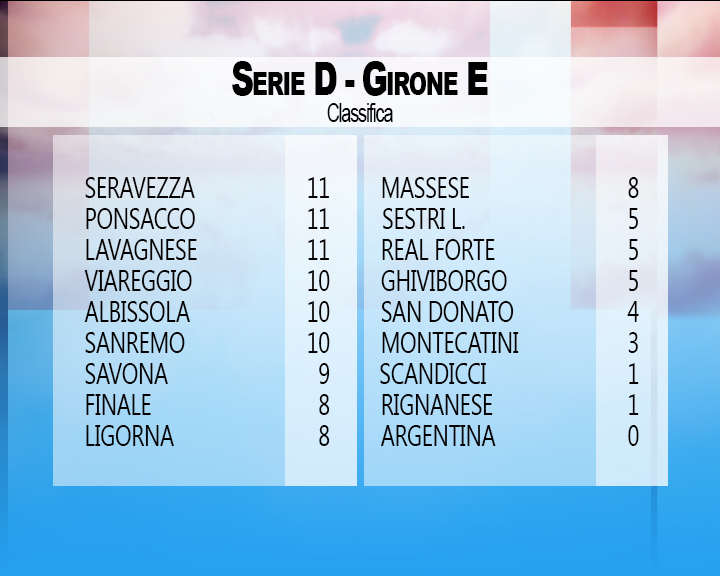 CALCIO DILETTANTI - In Serie D finisce 1-1 il derby della Versilia tra Seravezza e Real Forte Querceta. Pesante sconfitta del Viareggio (4-2) ad Albissola. In Eccellenza il Castelnuovo fermato in casa dall'Urbino Taccola 1-1. Vedi risultati e classifiche.