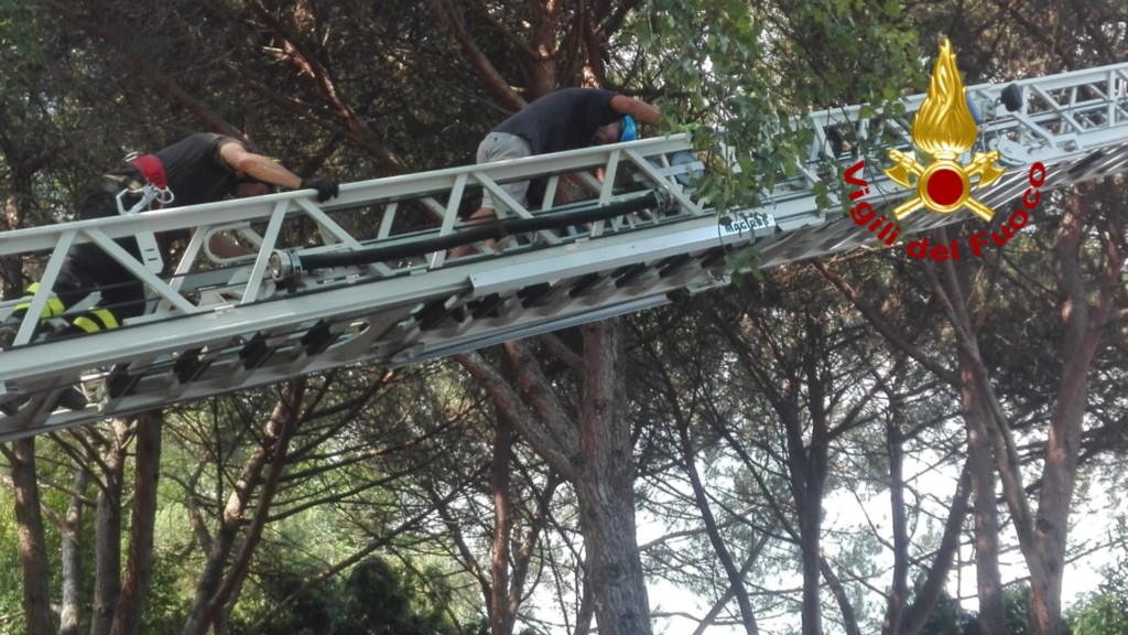 La piattaforma si è bloccata a causa di un cedimento di uno stabilizzatore tenendo i due operai in bilico fino all’arrivo dei Vigili del fuoco. L’episodio è accaduto in via Martiri di S. Anna ieri pomeriggio. La moglie di uno degli operai che assisteva al taglio dei pini ha avvertito il 115 e i Vigili del fuoco del distaccamento locale sono intervenuti e hanno messo in sicurezza la piattaforma mediante ancoraggi appositi (tirfor). Attivata intanto anche una scala aerea. Gli operai sono stati fatti scendere scesi illesi, benchè un po’ scossi dalla disavventura. Proseguono i rilievi dei vigili urbani e della Asl.