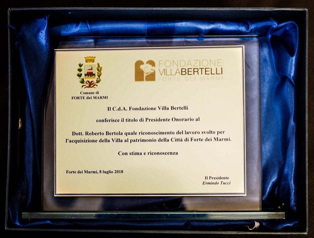 “In riconoscimento, si legge nella targa donatagli – del lavoro svolto per l’acquisizione della Villa al patrimonio di Forte dei Marmi”.