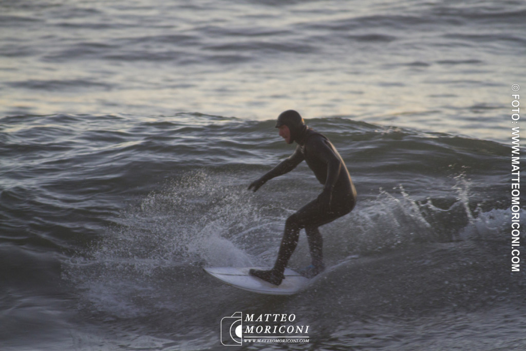 Nonostante le temperature rigide tipiche di questo periodo, il mare mosso di questi giorni offre le condizioni perfette per i surfisti che stanno "affollando" la costa versiliese, con notevoli presenze ai pontili.