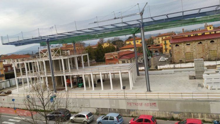 Dopo i ritardi dovuti alla reperibilità dei materiali, sono iniziati i lavori alla copertura del portico della Piazza Coperta di San Concordio. La pensilina, vero e proprio fulcro del progetto, rivestirà parte dell’area esterna del complesso: realizzata con dei pannelli sandwich in poliuretano rivestito da due lamine di acciaio, poggerà sui pilastri dello spiazzo aperto sottostante.