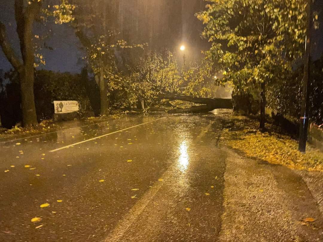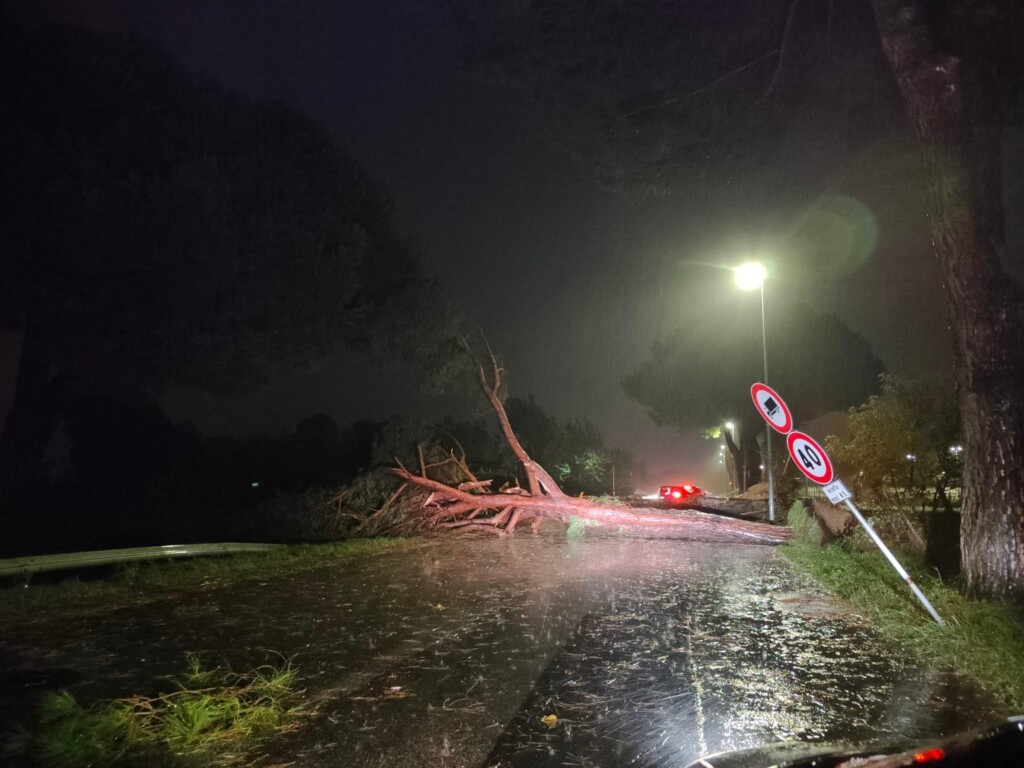 Pini di alto fusto caduti anche in via fratelli Rosselli a Lido di Camaiore, chiusa al traffico.