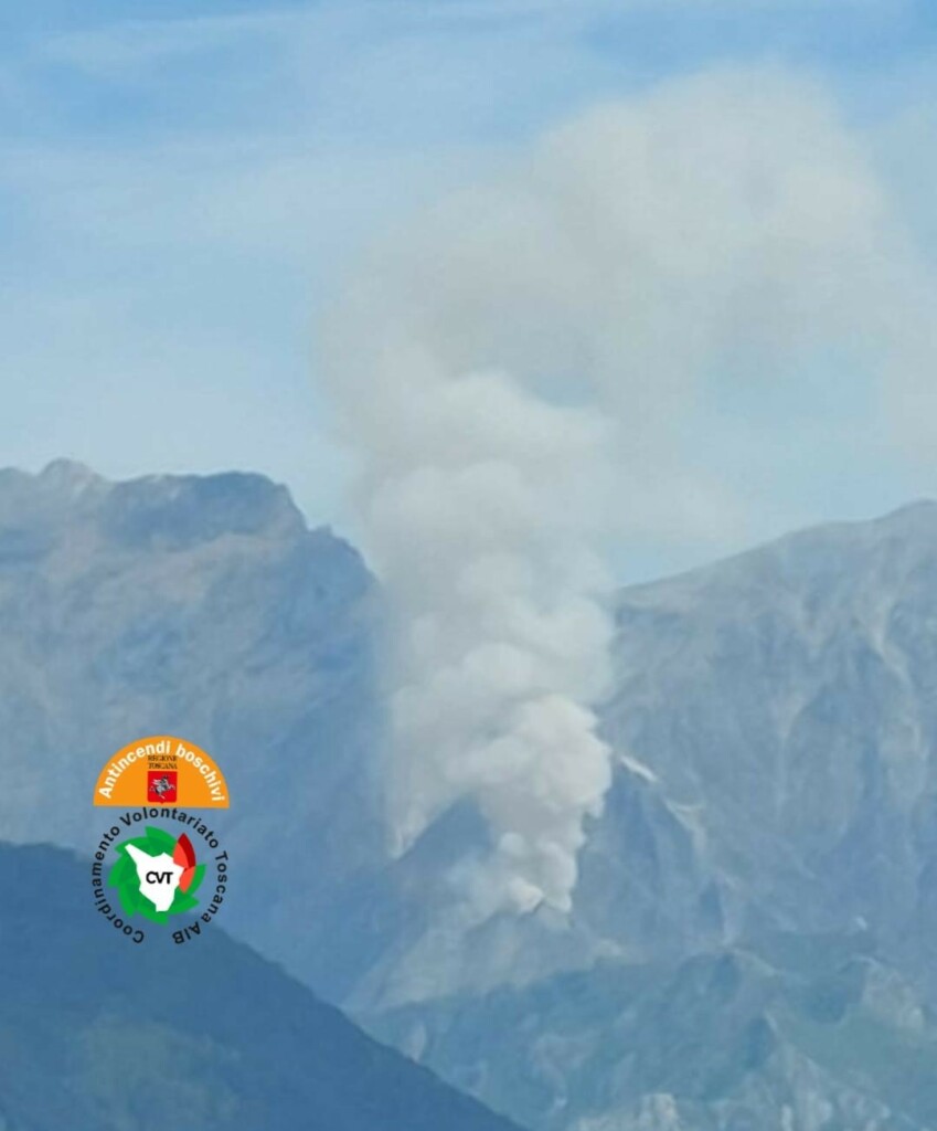 Incendio sulle Apuane in alta quota: a fuoco pascoli alla Vettolina