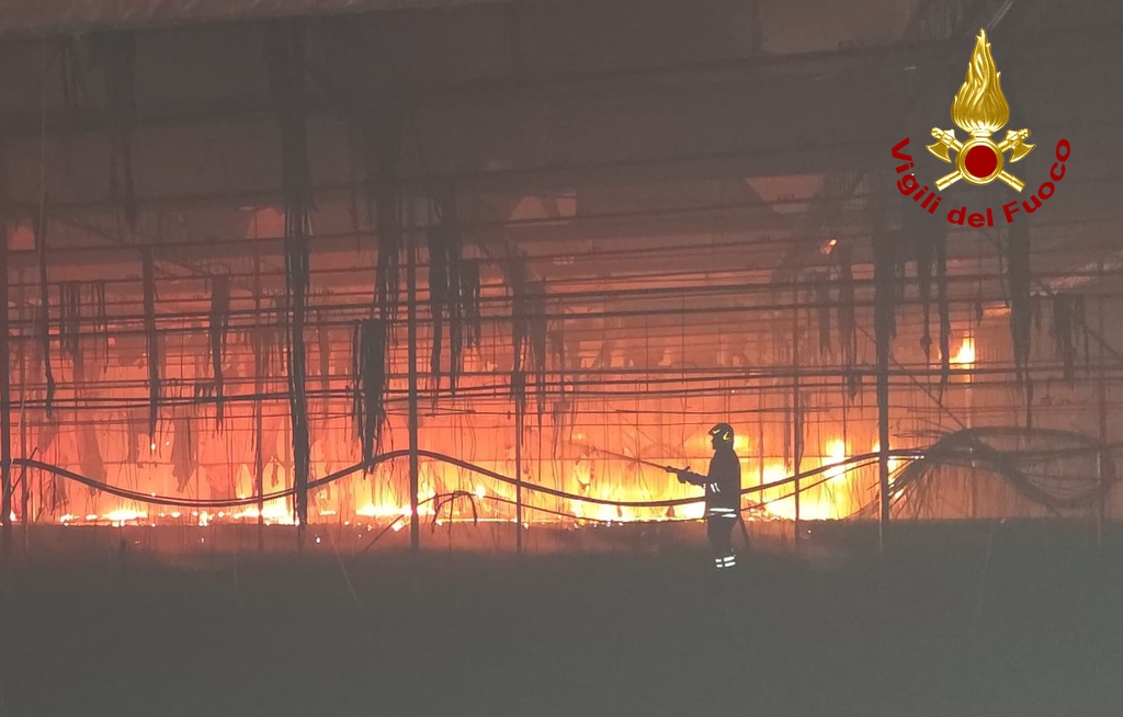Andati a fuoco 14mila mq di copertura, i macchinari per la lavorazione e circa 30.000 piante di Stelle di Natale. Corsa contro il tempo per salvare il resto della produzione.